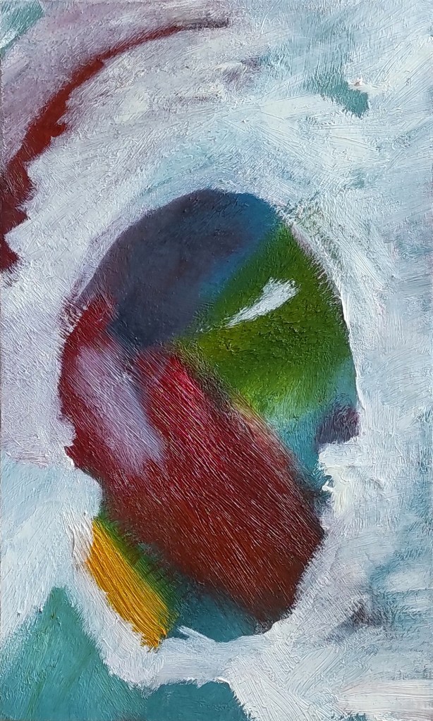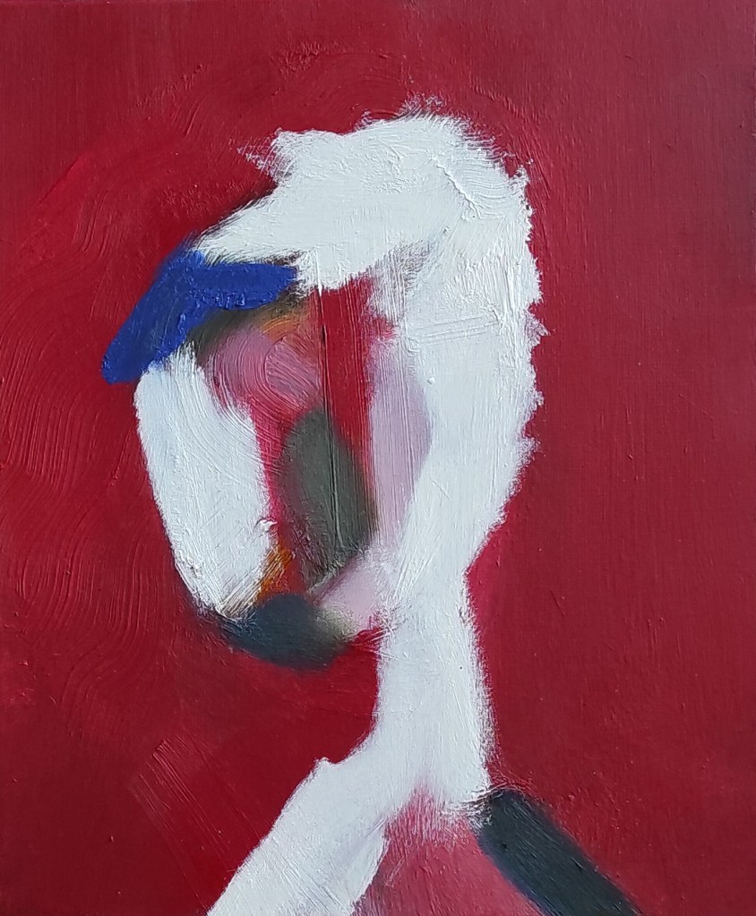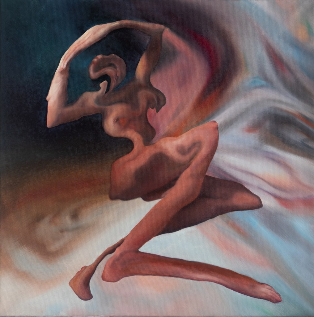 Artist: Giulnara Fatullaeva. She is a multidisciplinary artist based in Paris, focusing primarily on oil painting. Her artwork, showcased globally, delves into profound emotional and psychological landscapes, frequently inspired by her own encounters with trauma. Her paintings embraces a surreal, dreamlike style, where the human form is fluid, stretched, and abstracted, evoking a sense of psychological depth and inner conflict.